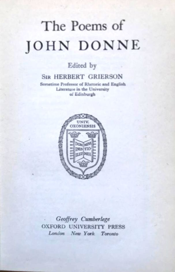 Шифр: 2/7а Donne John The Poems of John Donne. Edited by Sir Herbert Grierson. Oxford University Press, 1951. Источник поступления: Собрание В.П. Полухиной. Рубрики: Зарубежная поэзия и проза Персоны: Грирсон, Герберт Джон Клиффорд / Grierson, Herbert John Clifford