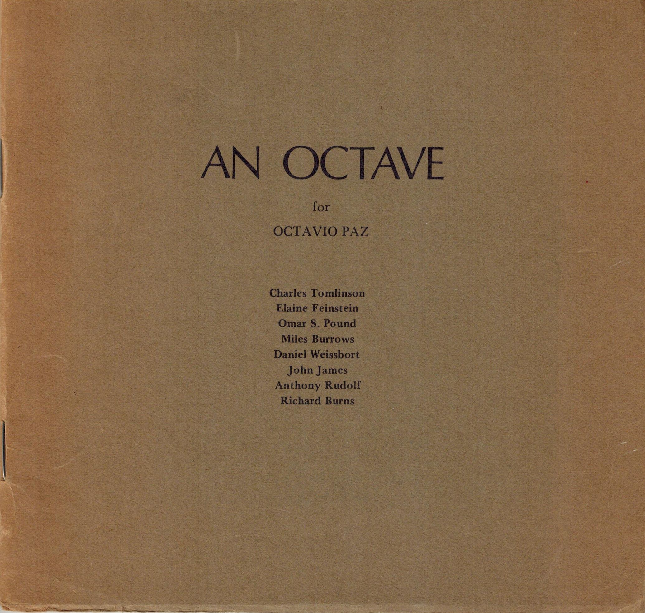 Шифр: 2/7б An Octave for Octavio Paz. Editors: Richard Burns and Anthony Rudolf. The Sceptre Press & The Menard Press, 1972. Number 10/50. Аннотация: Participants: Charles Yomlinson, Elaine Feinsyein, Omar S. Pound, Miles Burrows, Daniel Weissbort, John James, Anthony Rudolf, Richard Burns. This issue is limited to 350 numbered copies, 1-50 being sighned by the poets. Источник поступления: Собрание В.П. Полухиной. Рубрики: Зарубежная поэзия и проза Персоны: Берроуз Майлс / Berrows Miles, Бёрнс Ричард / Burns Richard, Файнштейн Элейн / Feinstein Elaine, Джеймс Джон / James John, Паунд Омар / Pound Omar S., Рудолф Энтони / Rudolf Anthony, Томлинсон Чарльз / Tomlinson Charles, Уайссборт Дэниел / Weissbort Daniel