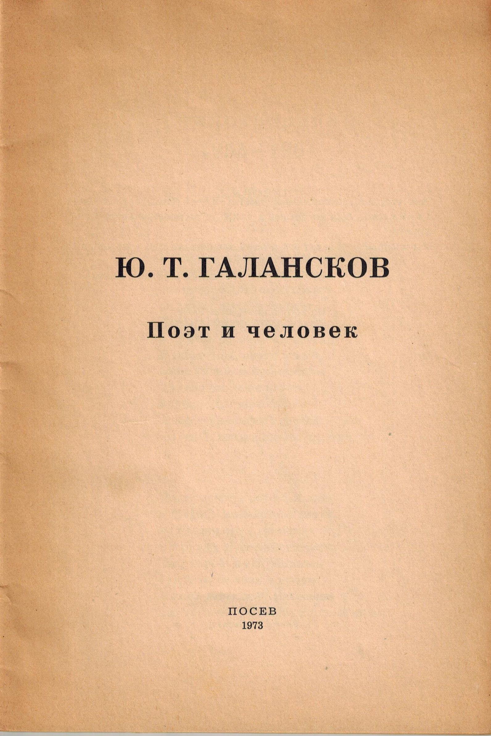 Шифр: 3/5а Галансков Юрий Тимофеевич Поэт и человек. Франкфурт-на-Майне: Посев, 1973. Источник поступления: Собрание В.П. Полухиной. Рубрики: Русская поэзия