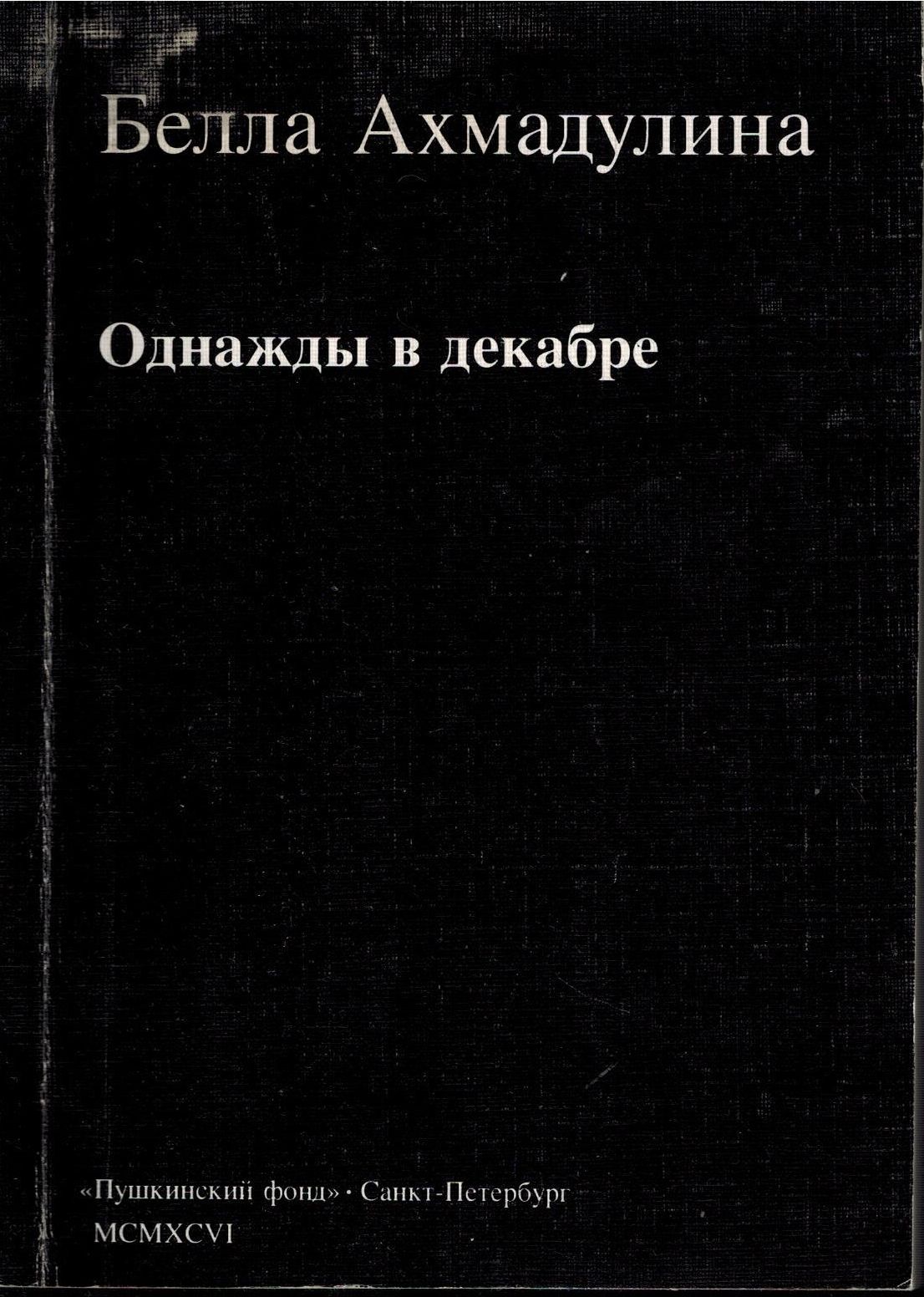 Шифр: 3/4а Ахмадулина Белла Ахатовна Однажды в декабре... : Рассказы, эссе, воспоминания. СПб.: "Пушкинский фонд", 1996. - 168 с. Источник поступления: Собрание В.П. Полухиной. Рубрики: Русская проза