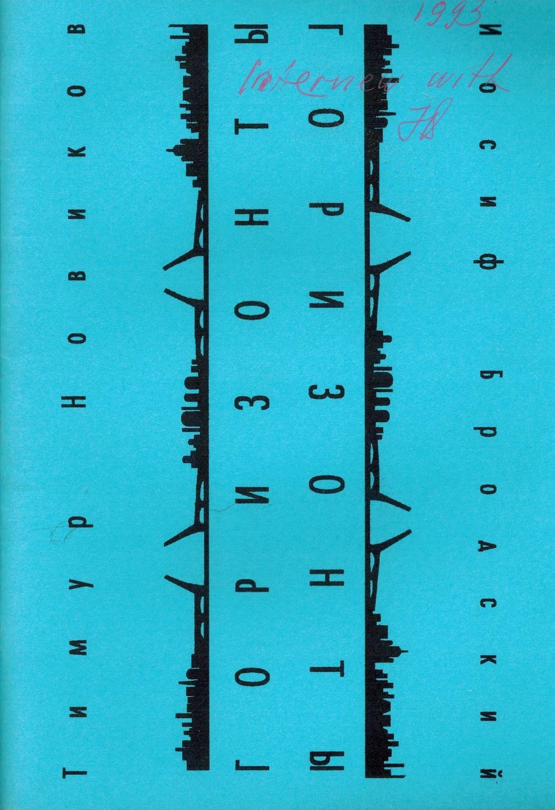 Шифр: 1/5б Новиков Тимур Петрович, Бродский Иосиф Александрович Горизонты. Предисл. А. Хлобыстина. СПб.: Институт истории современного искусства, 2000. - 56 с. Аннотация: Андрей Хлобыстин. Встречи за горизонтом. Иосиф Бродский. Горизонты. Фрагменты стихов. Тимур Новиков. Объяснение художника Тимура Новикова. Тимур Новиков. Знаковая перспектива. В саду музея. Беседа Иосифа Бродского с Тимуром Новиковым. Александр Медведев. Пилот и ангел над исчезающим горизонтом. Источник поступления: Собрание В.П. Полухиной. Рубрики: Жизнь и эпоха И.А. Бродского, Поэтика И.А. Бродского Персоны: Медведев Александр Васильевич, Хлобыстин Андрей Леонидович