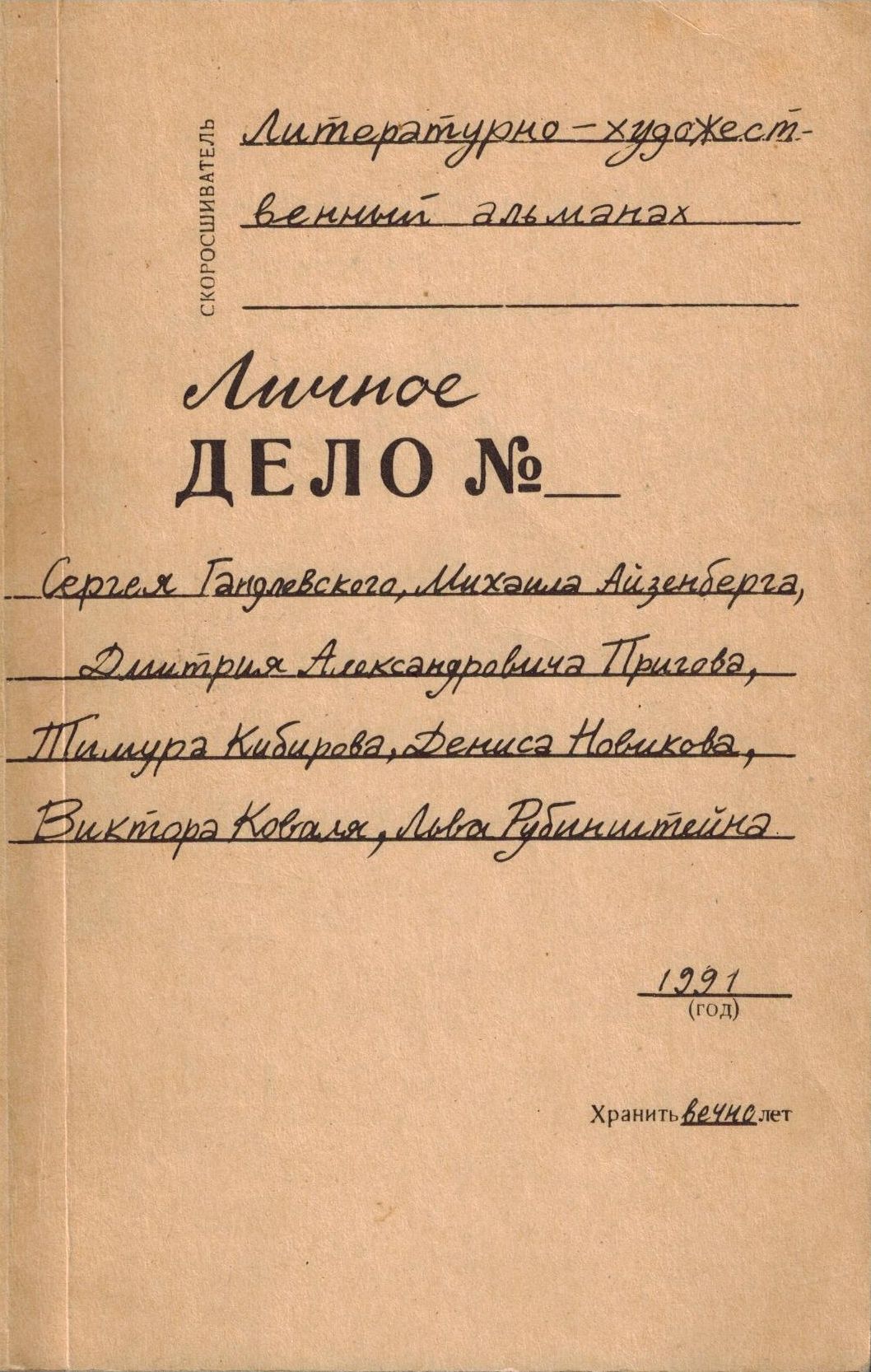 Шифр: 3/3а Личное дело №: Литературно-художественный альманах. Сост. Л. Рубинштейн. Предисл. Михаил Айзенберг. М.: В/О "Союзтеатр", 1991. - 272 с. Надписи: Дарственная надпись В.П. Полухиной от Дениса Новикова. 1992. Источник поступления: Собрание В.П. Полухиной. Приложения: Содержание. Рубрики: Русская поэзия Персоны: Айзенберг Михаил Натанович, Гандлевский Сергей Маркович / Gandlevsky Sergey, Деготь Екатерина Юрьевна, Зорин Андрей Леонидович, Кибиров Тимур Юрьевич, Коваль Виктор Степанович, Новиков Денис Геннадьевич, Пригов Дмитрий Александрович / Prigov Dmitri, Рубинштейн Лев Семёнович