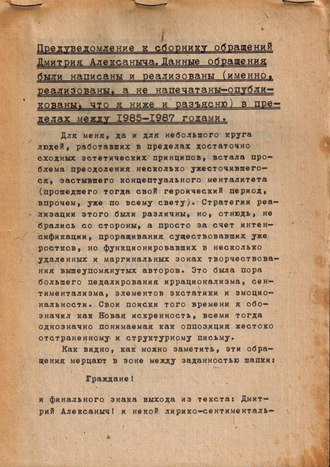 Шифр: 3/9а Пригов Дмитрий Александрович Обращения Дмитрия Александровича Пригова к народу. [Б.м., б. г.]. Аннотация: Сборник обращений Д.А. Пригова, написанных и реализованных в пределах между 1985-1987 годами. Источник поступления: Собрание В.П. Полухиной. Рубрики: Русская поэзия