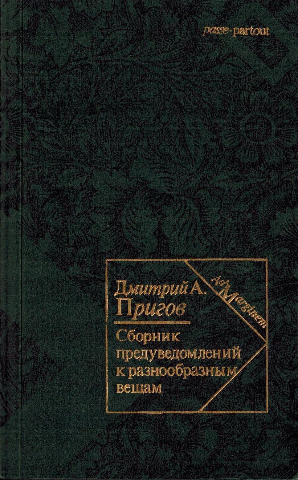 Шифр: 3/9а Пригов Дмитрий Александрович Сборник предуведомлений к разнообразным вещам. М.: Ad Marginem, 1996. - 302 с. Надписи: Дарственная надпись В.П. Полухиной от автора. Источник поступления: Собрание В.П. Полухиной. Рубрики: Русская поэзия