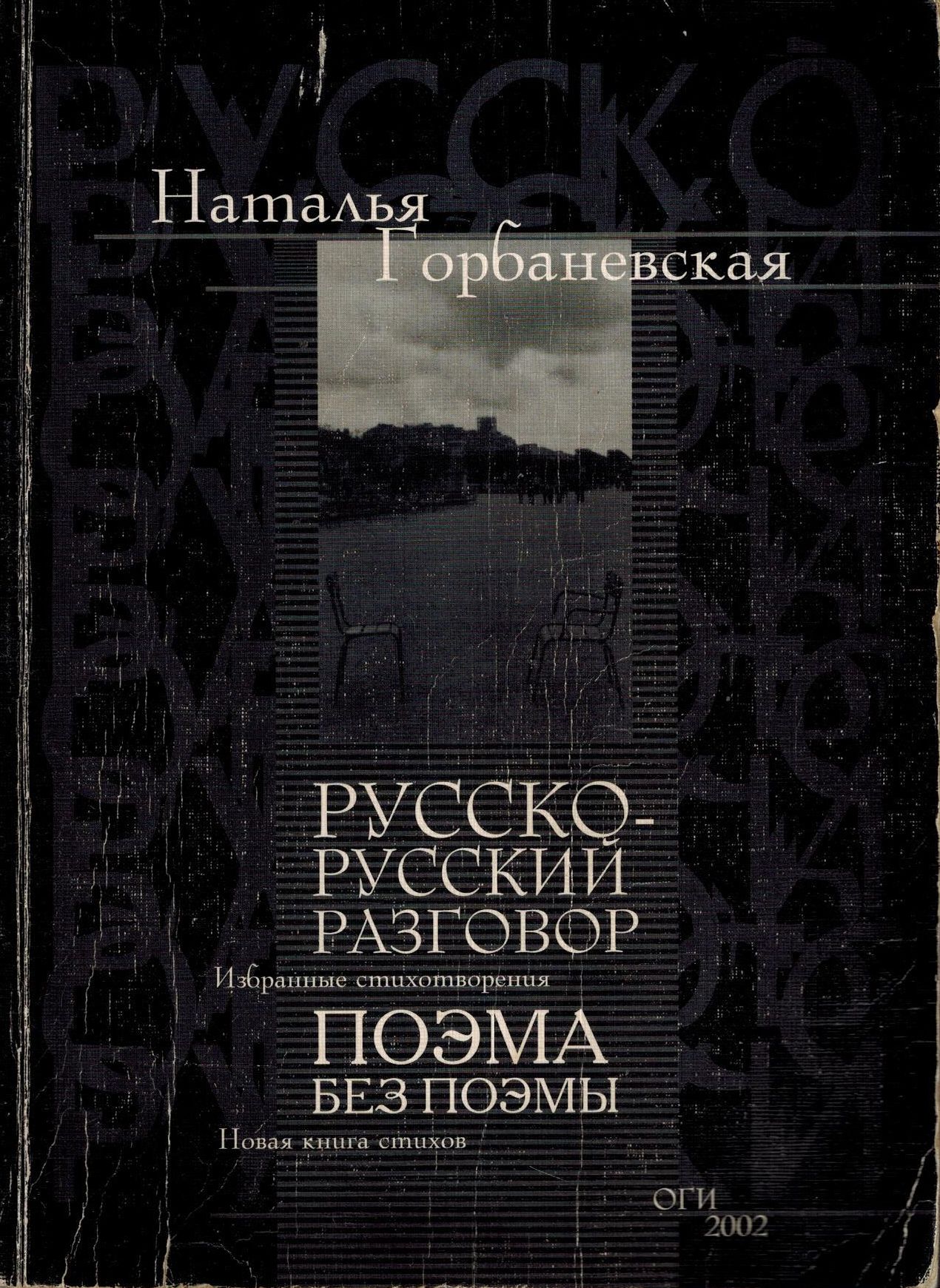 Шифр: 3/5б Горбаневская Наталья Евгеньевна Русско-русский разговор; Избранные стихотворения. Поэма без поэмы : Новая книга стихов. М.: ОГИ, 2003. - 300 с. Надписи: Дарственная надпись В.П. Полухиной и Д. Уайссборту от автора. Источник поступления: Собрание В.П. Полухиной. Рубрики: Русская поэзия