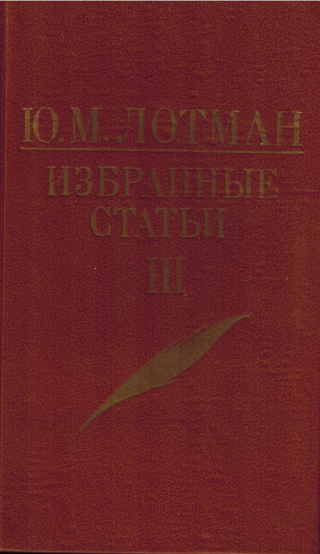 Шифр: 1/9а Лотман Юрий Михайлович Избранные статьи. В 3 т. Т. 3. Статьи по истории русской литературы. Теория и семиотика других искусств. Механизмы культуры. Мелкие заметки. Талинн: "Александра", 1993. - 496 с. Источник поступления: Собрание В.П. Полухиной. Рубрики: Общее литературоведение