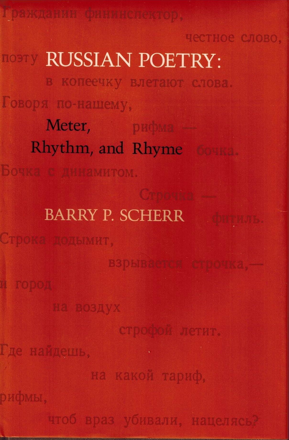 Шифр: 1/10б Scherr, Barry Paul Russian Poetry: Meter, Rhythm, and Rhyme. University of California Press, 1986. - 366 p. Надписи: Дарственная надпись В.П. Полухиной от автора. Источник поступления: Собрание В.П. Полухиной. Рубрики: Общее литературоведение, Россика