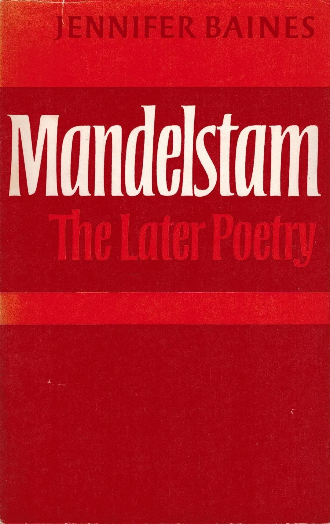 Шифр: 2/5б Baines Jennifer Mandelstam: The Later Poetry. Cambridge University Press, 1976. - 253 p. Источник поступления: Собрание В.П. Полухиной. Рубрики: Россика, Русская поэзия Персоны: Мандельштам Осип Эмильевич / Mandelshtam Osip
