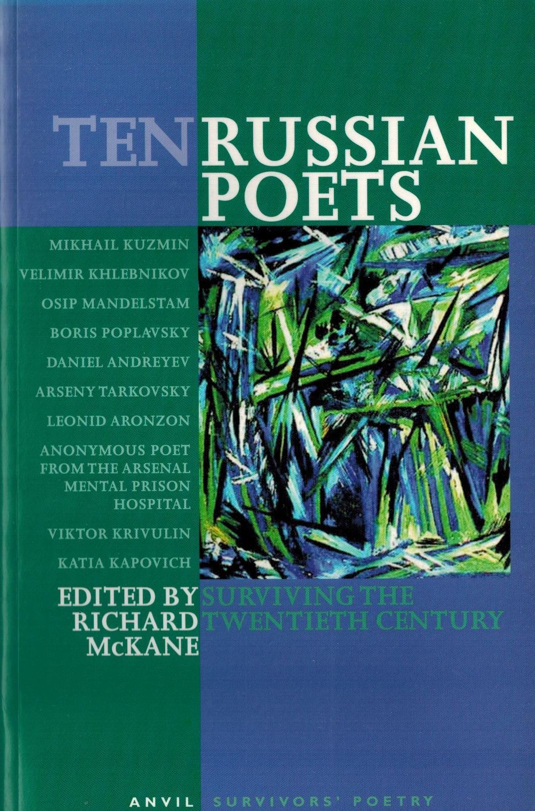Шифр: 1/10б Ten Russian Poets: Surviving the Twentieth Century. Edited by Richard McKane. With translations by Richard McKane and Vladimir Baskayev, Kitty Hunter Blair, Belinda Cooke and Michael Molnar. Anvil Press Poetry, 2003. - 269 p. Источник поступления: Собрание В.П. Полухиной. Рубрики: Россика, Русская поэзия Персоны: Аронзон Леонид Львович / Aronzon Leonid, Блэр, Кэтрин Хантер / Blair, Katherine Hunter, Кук Белинда / Cooke Belinda, Капович Катя (Екатерина Юльевна) / Kapovich Katia, Кривулин Виктор Борисович / Krivulin Victor, Мандельштам Осип Эмильевич / Mandelshtam Osip, Маккейн Ричард / McKane Richard, Молнар Майкл / Molnar Michael, Тарковский Арсений Александрович / Tarkovsky Arseniy, Андреев Даниил Леонидович, Кузмин Михаил Алексеевич, Поплавский Борис Юлианович, Хлебников Велемир (Виктор Владимирович)