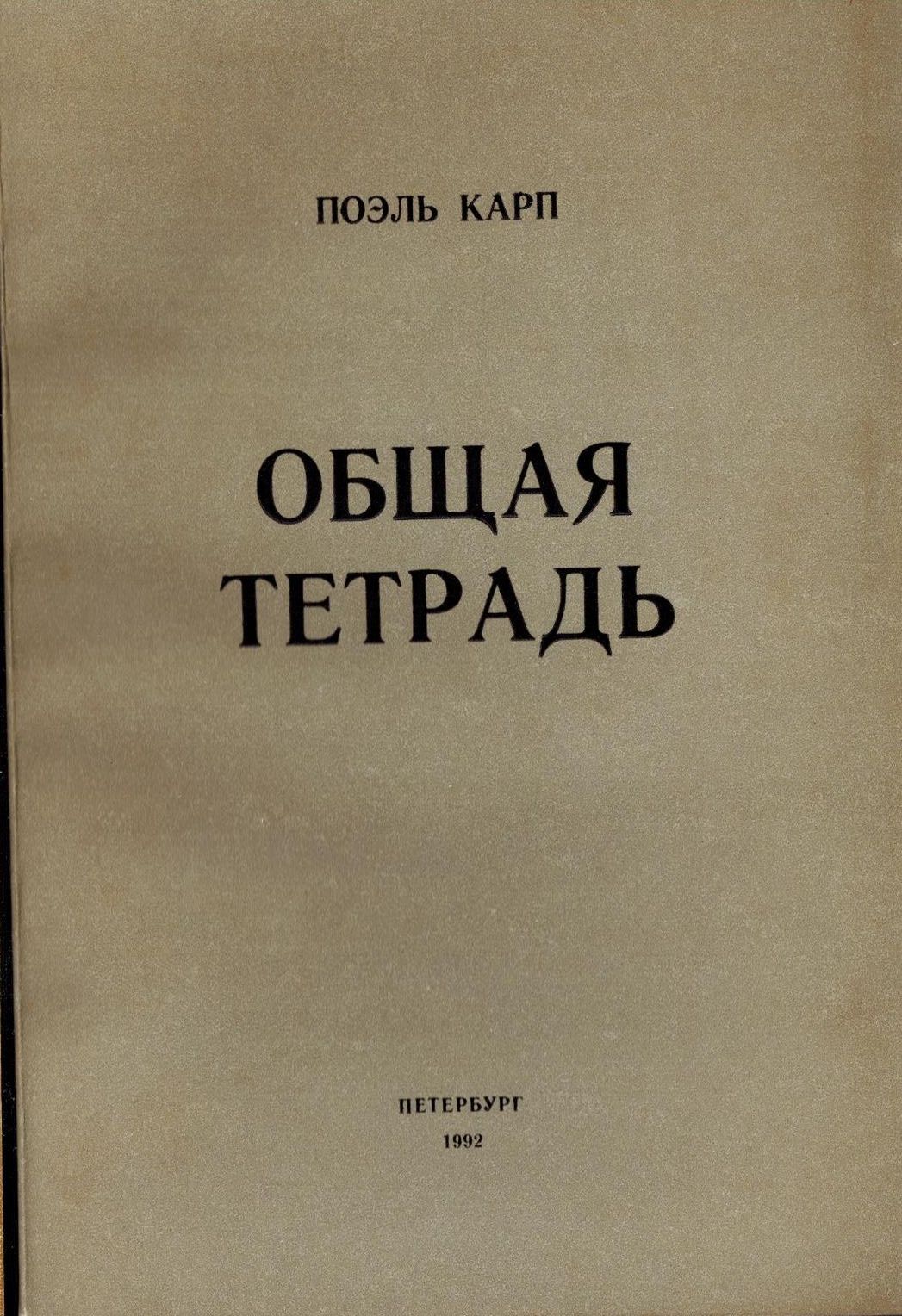 Шифр: 3/6б Карп Поэль Меерович Общая тетрадь. Петербург: Всемирное слово, 1992. - 200 с. Источник поступления: Собрание В.П. Полухиной. Рубрики: Русская поэзия