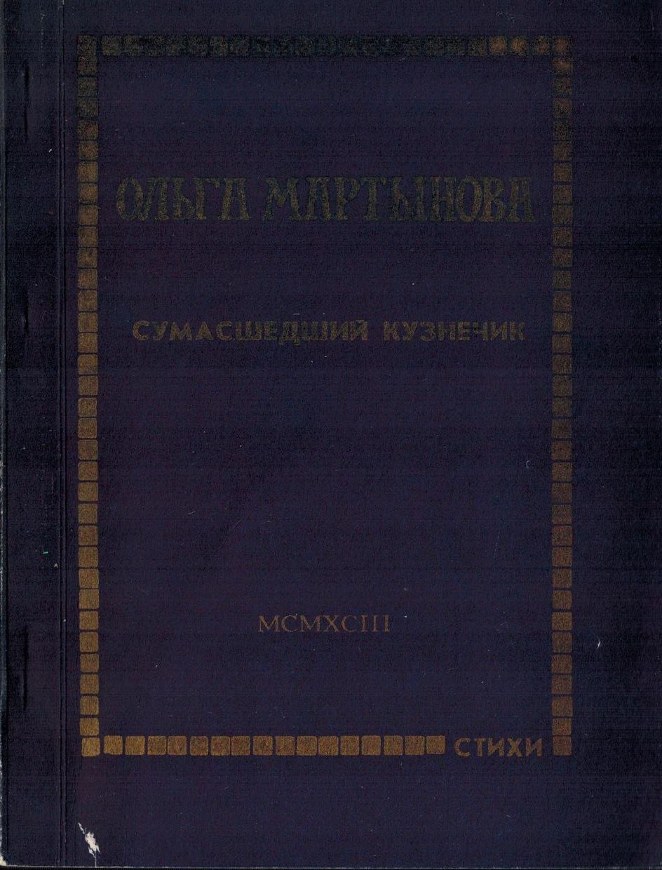 Шифр: 3/8а Мартынова Ольга Борисовна Сумасшедший кузнечик: Книга стихов. СПб. - Франкфурт-на-Майне: Ассоциация современной литературы "Камера хранения", 1993. - 84 с. Надписи: Дарственная надпись В.П. Полухиной от автора. Источник поступления: Собрание В.П. Полухиной. Рубрики: Русская поэзия