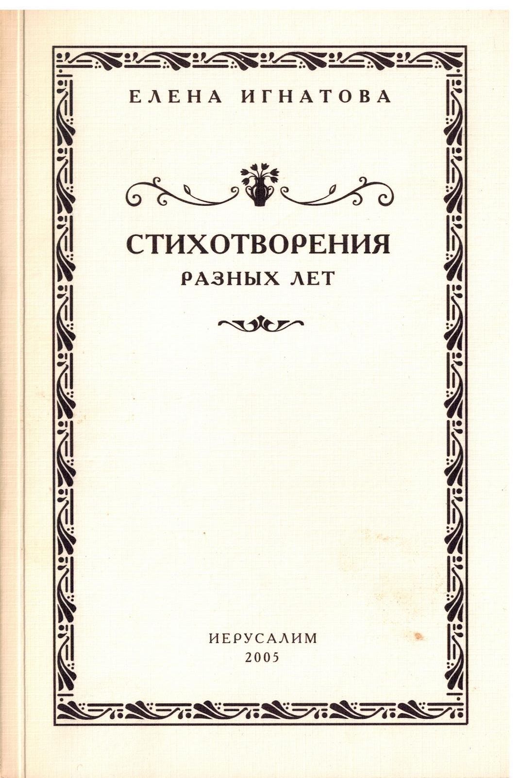 Шифр: 3/6б Игнатова Елена Алексеевна Стихотворения разных лет. Иерусалим, 2005. - 160 с. Источник поступления: Собрание В.П. Полухиной. Рубрики: Русская поэзия