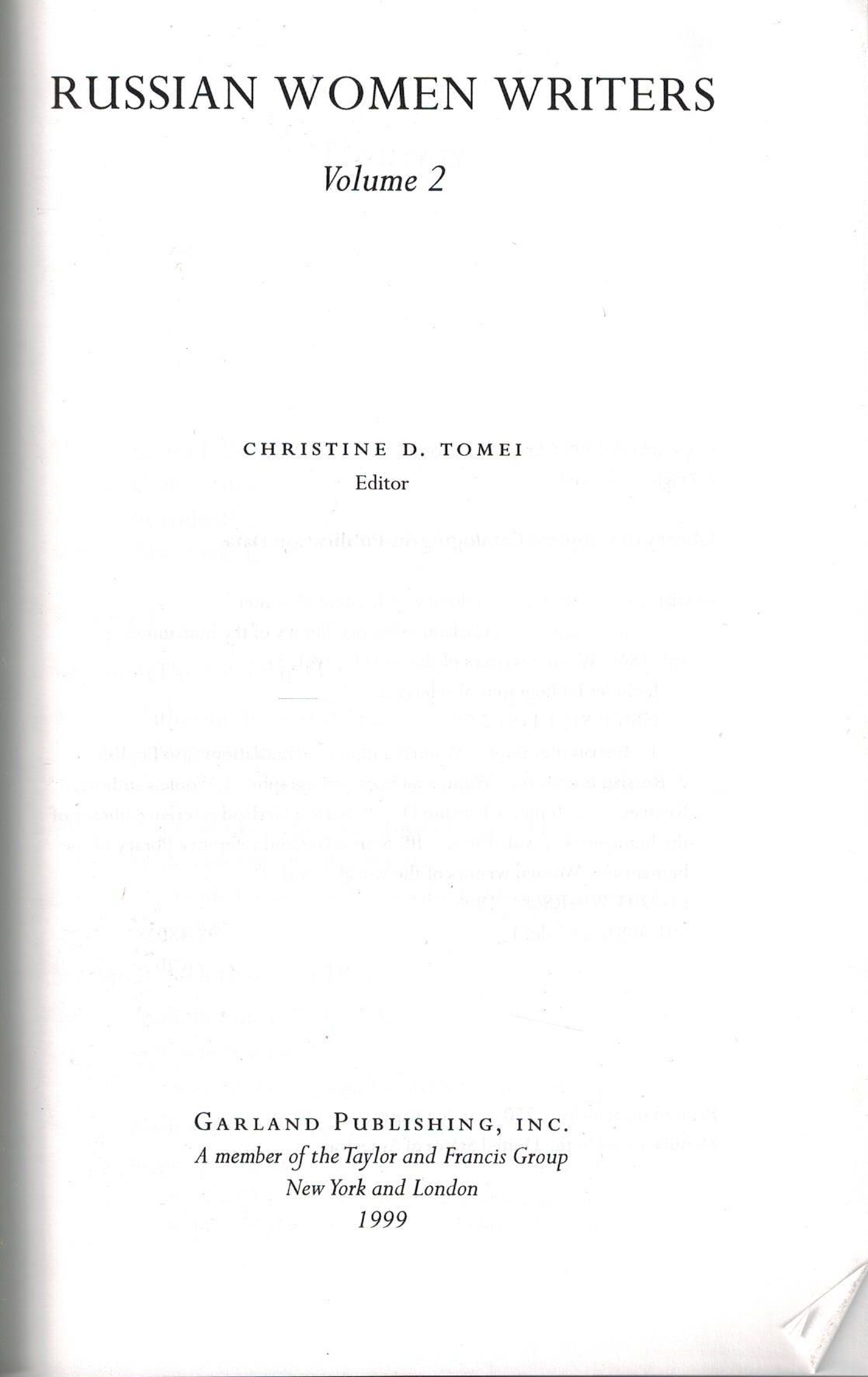 Шифр: 1/10а Russian Women Writers. Volume 2. Editor Christine D. Tomei. New-York, London^ Garland Publishing, 1999. - 1548 p. Источник поступления: Собрание В.П. Полухиной. Рубрики: Россика