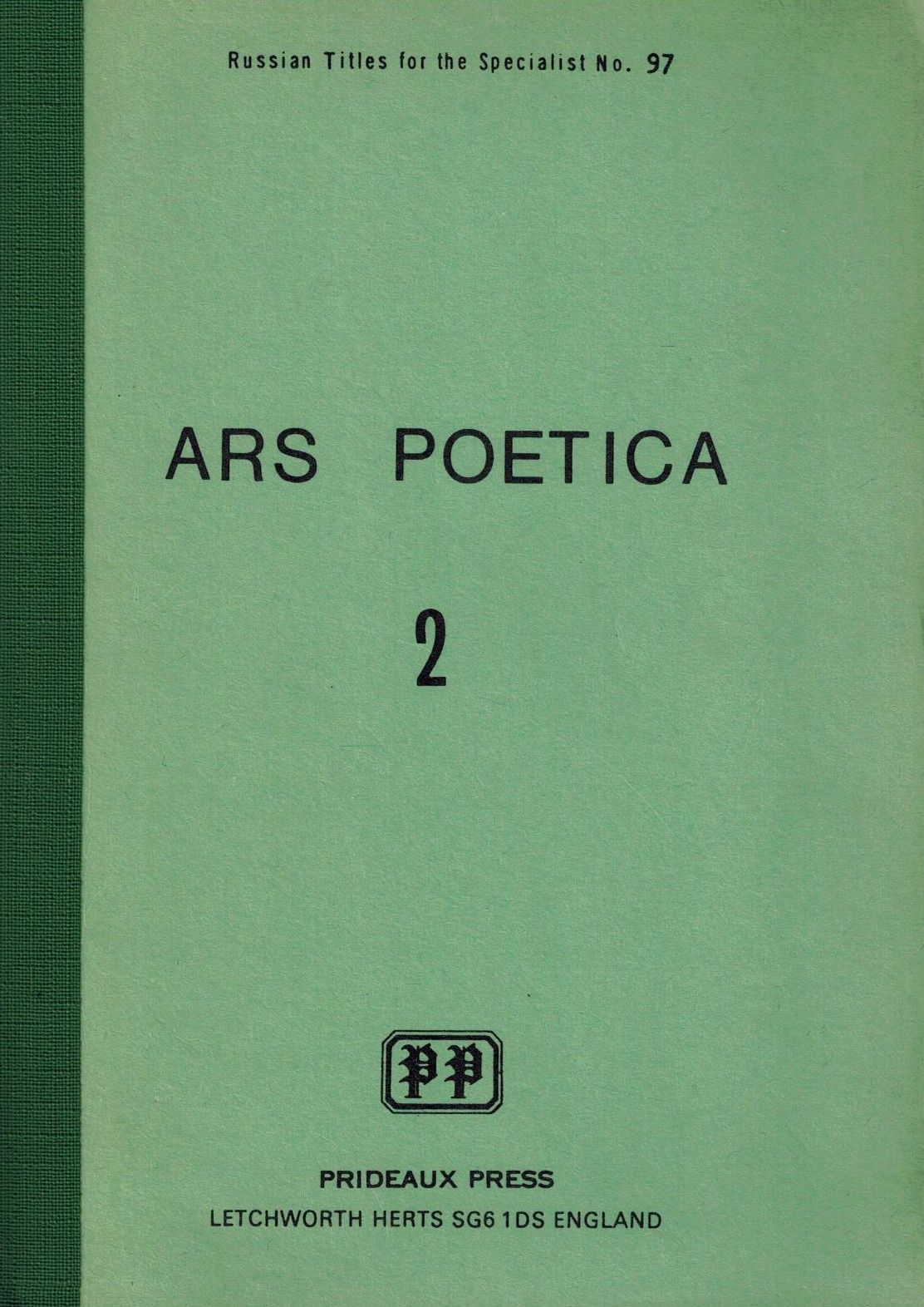 Шифр: 1/9б Ars Poetica II. Стих т проза. Сборник статей под ред. М.А. Петровского и Б.И. Ярхо. М.: Гос. академия художественных наук, 1928. Letchworth, England: Prideaux Press, 1976. - 211 с. - (Russian Titles for the Specialist. No. 97). - (Факсимильное издание). Источник поступления: Собрание В.П. Полухиной. Рубрики: Русская поэзия