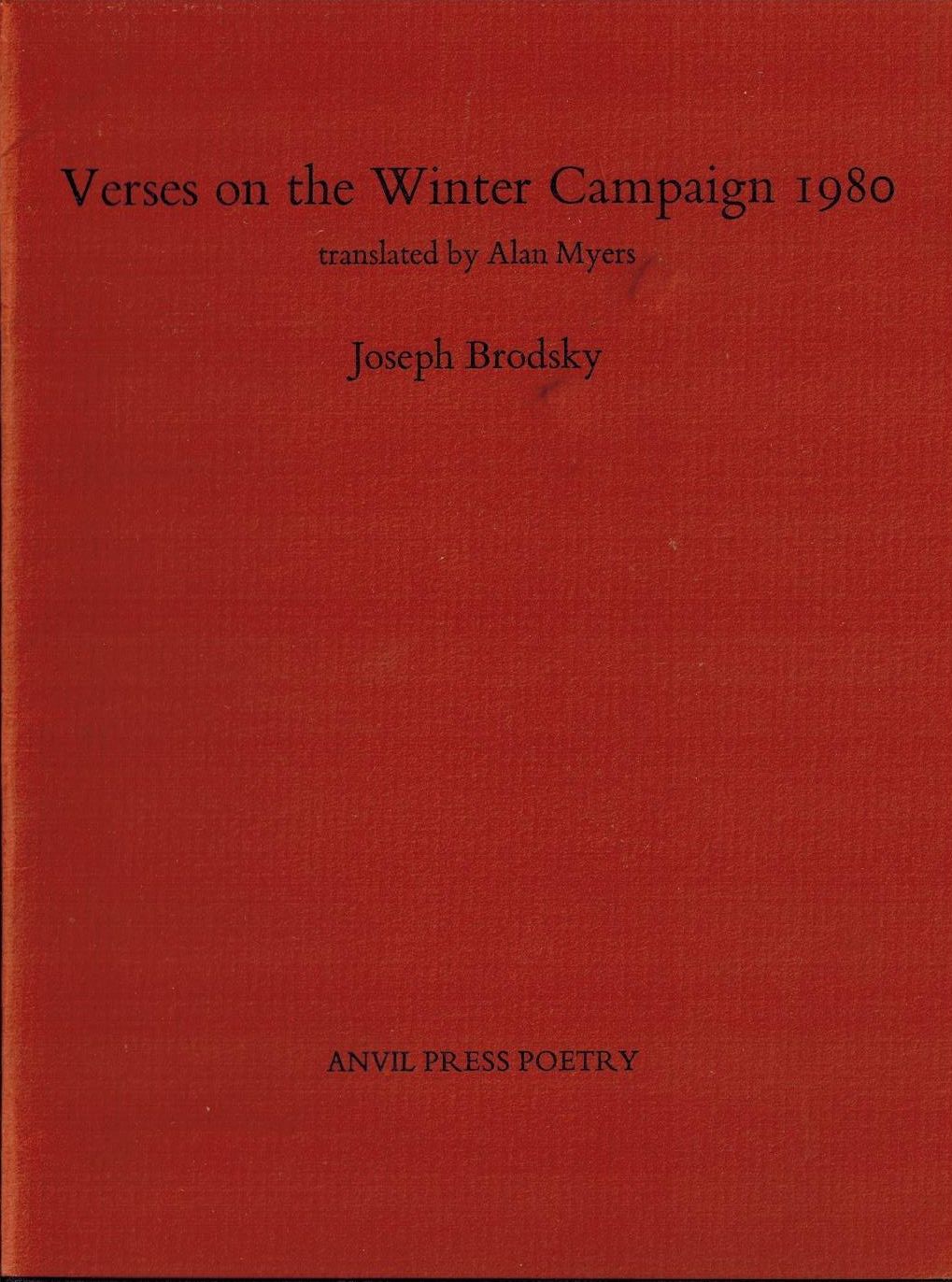 Шифр: 1/6б Brodsky Joseph Verses on the Winter Campaign 1980. Translated by Alan Myers. Anvil Press Poetry, 1981. - 6 p. Надписи: Подписи Иосифа Бродского и Алана Майерса. Экз. 251/500. Источник поступления: Собрание В.П. Полухиной. Рубрики: Автографы И.А. Бродского, Поэзия И.А. Бродского Персоны: Майерс Алан / Myers Alan