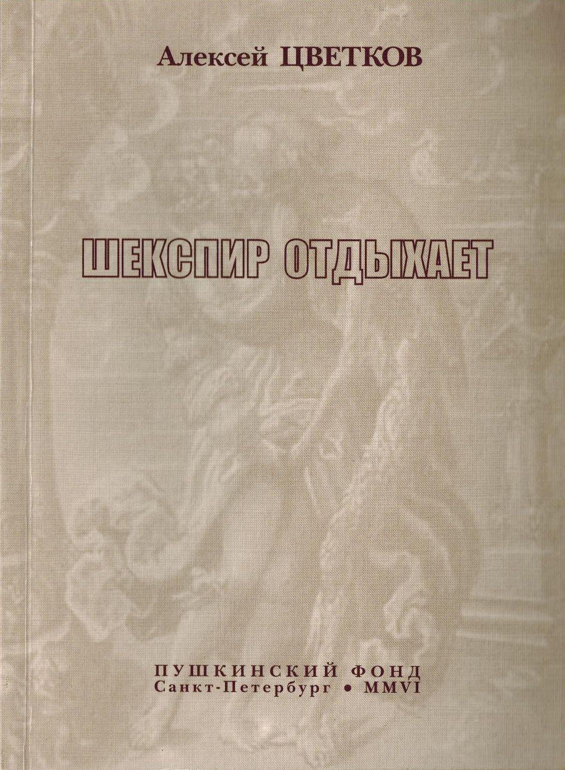 Шифр: 3/10а Цветков Алексей Петрович Шекспир отдыхает : Книга новых стихотворений 2004-2005 гг. СПб.: "Пушкинский фонд", 2006. - 68 с. Источник поступления: Собрание В.П. Полухиной. Рубрики: Русская поэзия