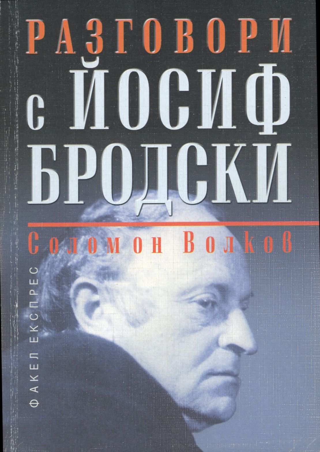Шифр: 1/7а Волков Соломон Моисеевич Разговори с Йосиф Бродски. Перевод от руски Бойко Ламбовски. Под редакцията на Георги Борисов. София: Факел Експрес, 2000. - 368 с. Источник поступления: Собрание В.П. Полухиной. Рубрики: Интервью И.А. Бродского