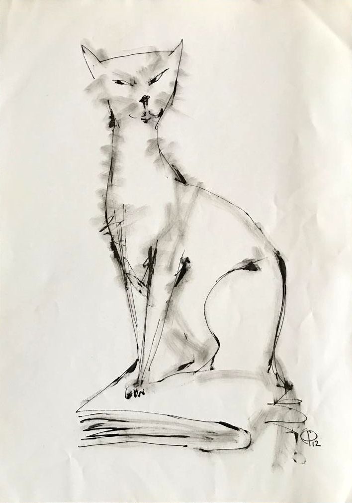 Шифр: 2/2 Фалькин Сергей Александрович 11 рисунков кошек Сергея Фалькина. Папка А4. Мелованная бумага. Источник поступления: Собрание В.П. Полухиной.